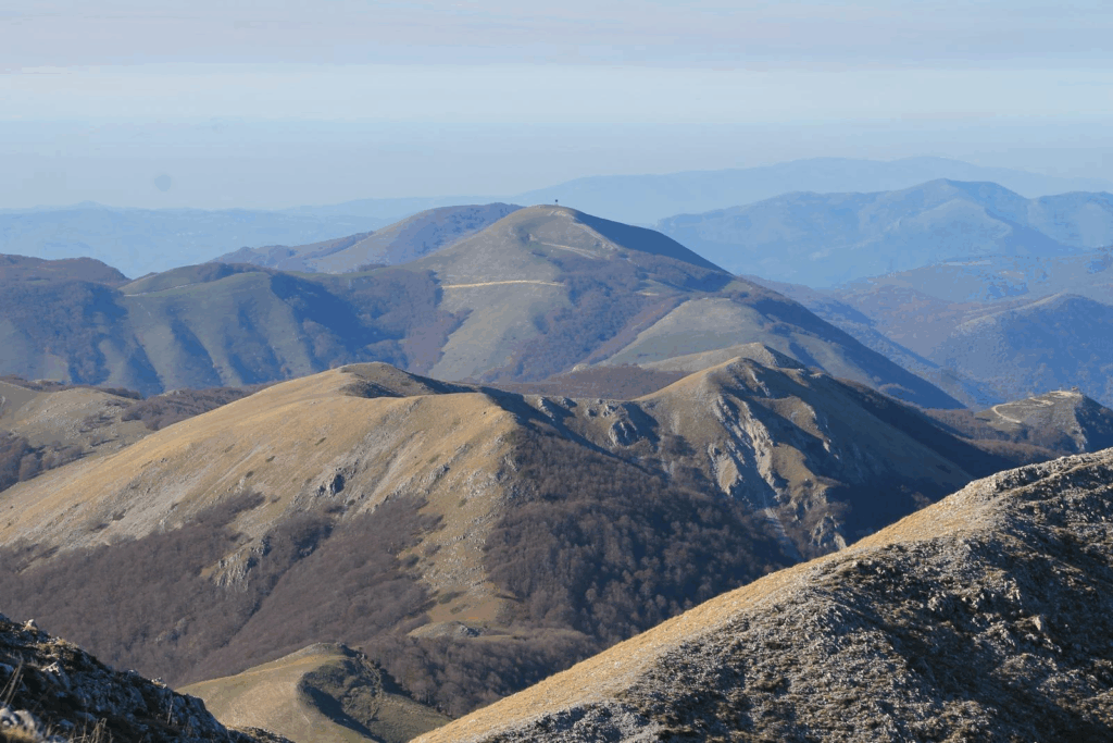 Oltrepassato il Rifugio Maiolica e la sua provvidenziale fonte d’acqua, il paesaggio cambia volto. Il sentiero si apre, la vista spazia verso l’imponente sagoma del Terminillo e le vette dell’Appennino Centrale. Qui la montagna decide di mostrare il suo vero carattere.